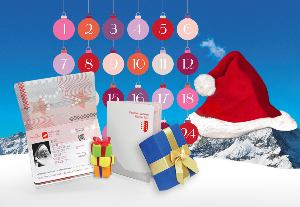 Et oui, des cadeaux rien que pour vous qui vous attendent du 1er au 24 décembre sur Facebook et sur notre application gratuite "Passeport valaisan". Il y en pour tous les goûts : bouteilles de vin, entrées dans un grand festival, des musées ou un théâtre, des Passeport valaisans, des cartes-cadeaux et bien plus encore.